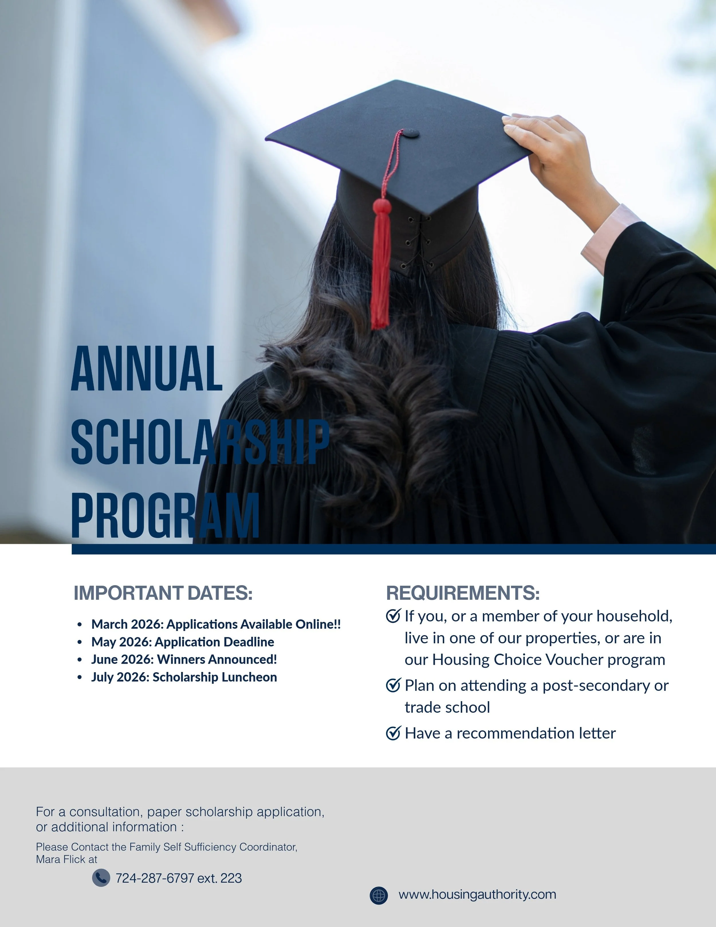 The HACB Scholarship Program provides financial assistance to eligible participants pursuing post-secondary education or career training. The program is designed to support educational advancement and long-term self-sufficiency by helping offset costs such as tuition, fees, and required educational expenses.