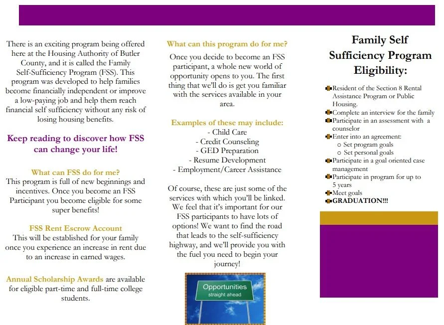 Helpful Links: FSS Program Brochure / FSS Intake Form
